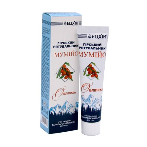 Крем – бальзам содержит сбалансированный комплекс экстрактов мумие, облепихи, алоэ, бодяги, чистотела, ромашки, мяты перечной и зверобоя. Основными компонентами являются масло облепихи и мумие. Масло облепихи стимулирует процессы кожного кровообращения, способствуя заживлению микротравм на коже, нормализует внутриклеточный обмен.