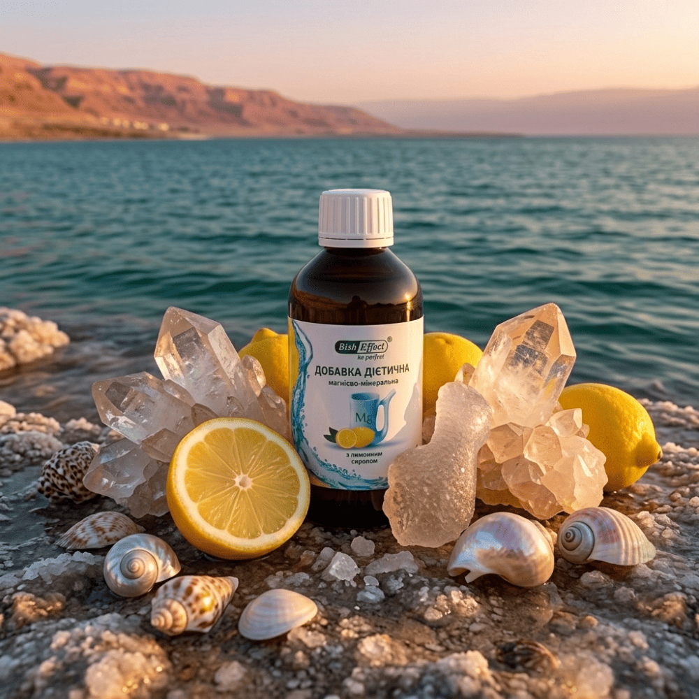 Питний бішофіт з лимонним сиропом 250 мл — це природне джерело магнію у зручній рідкій формі з додаванням лимонного сиропу. Формат 250 мл розрахований на повноцінний курс прийому тривалістю 25–30 днів. Освіжаючий лимонний смак робить прийом продукту комфортним, а природний бішофіт з Полтавського родовища забезпечує організм біодоступним магнієм та комплексом мікроелементів. Продукт призначений для дорослих як додаткове джерело магнію в раціоні.
