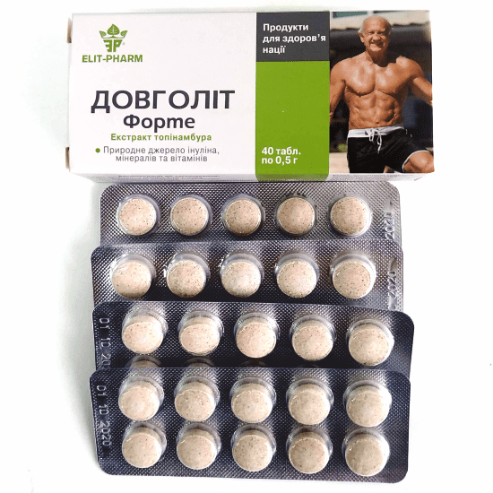 ДД «Довголіт форте» - це 100% концентрат топінамбура з високим вмістом біологічно активної речовини інуліну, який являє собою складний вуглевод, що містить 95% фруктози.