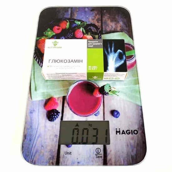 Склад: глюкозамін - 0,4 г, кислота аскорбінова (віт. С) - 0,005 г.