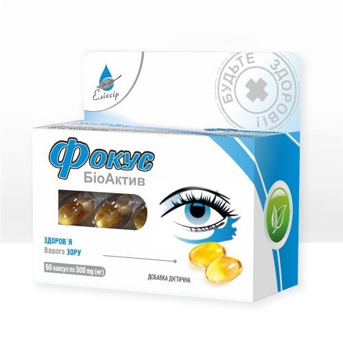 «Фокус БіоАктив» - це комплекс вітамінів, мікроелементів і рослинних каротиноїдів, який компенсує дефіцит вітамінів і мінеральних речовин при підвищених зорових навантаженнях, покращує зір в умовах слабкої освітленості. Препарат сприяє нормалізації зору і зниження ризику розвитку катаракти, дегенерації сітківки.
