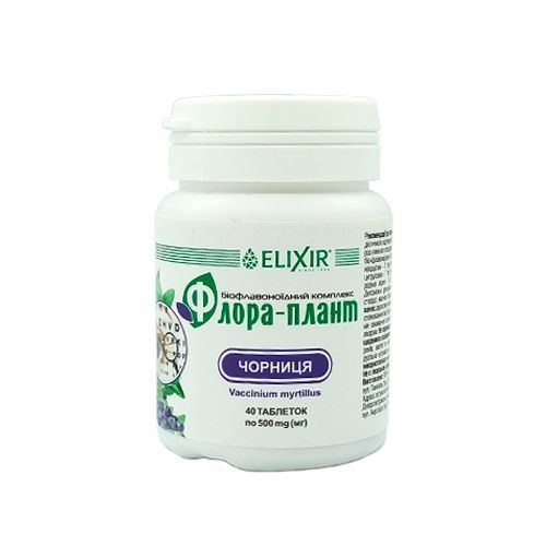 Склад : екстракт чорниці - 50 мг, біофлавоноїдний комплекс "Флора-Плант" - 20 мг (кверцетин - 2 мг, вітамін С - 4 мг, біофлаваноїди цитрусових - 7 мг, вітамін Е - 2 мг, екстракт виноградних зерен - 5 мг). Допоміжні речовини: сорбіт, мальтодекстрин, кальцию стеарат, мікрокристалічна целюлоза.