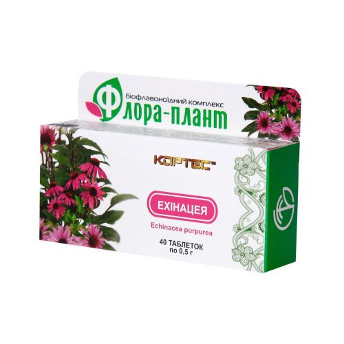Флора – Плант Ехінацея  - профілактичний природний засіб для захисту організму в період загострення простудних захворювань. Застосовується при ослабленому імунітеті, вірусних і бактеріальних інфекціях, кашлі, бронхіті, запаленнях порожнини рота і горла, а також при зниженні сил організму в стресових ситуаціях.
