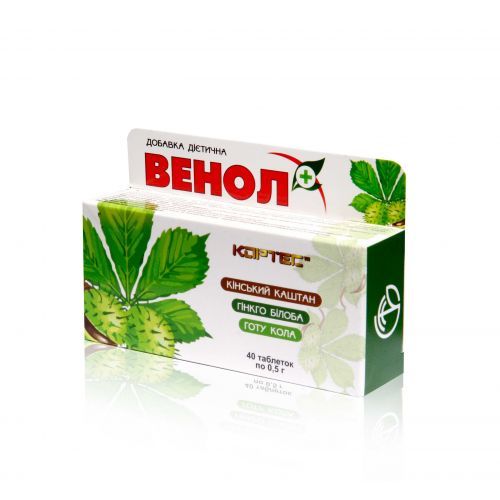 Добавка дієтична Венол - це допоміжний природний засіб при порушеннях кровообігу, створений на основі кількох складових, сінергічна дія яких здатна зменшити прояви варикозу - болі, набряки, дискомфорт, судоми, вечірню втому ніг.